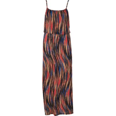 Stand out in this bold brown multi colour print waisted maxi dress for £24.99 . Pair with gold accessories, a head piece / headband (like a homemade wrap) and sandals.