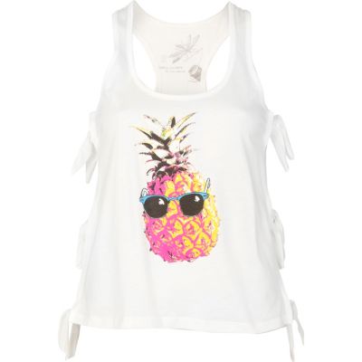 This cream pineapple print three bow side tie vest top for 16.99 ! Match this top with a pair of light denim shorts or leggings ;)